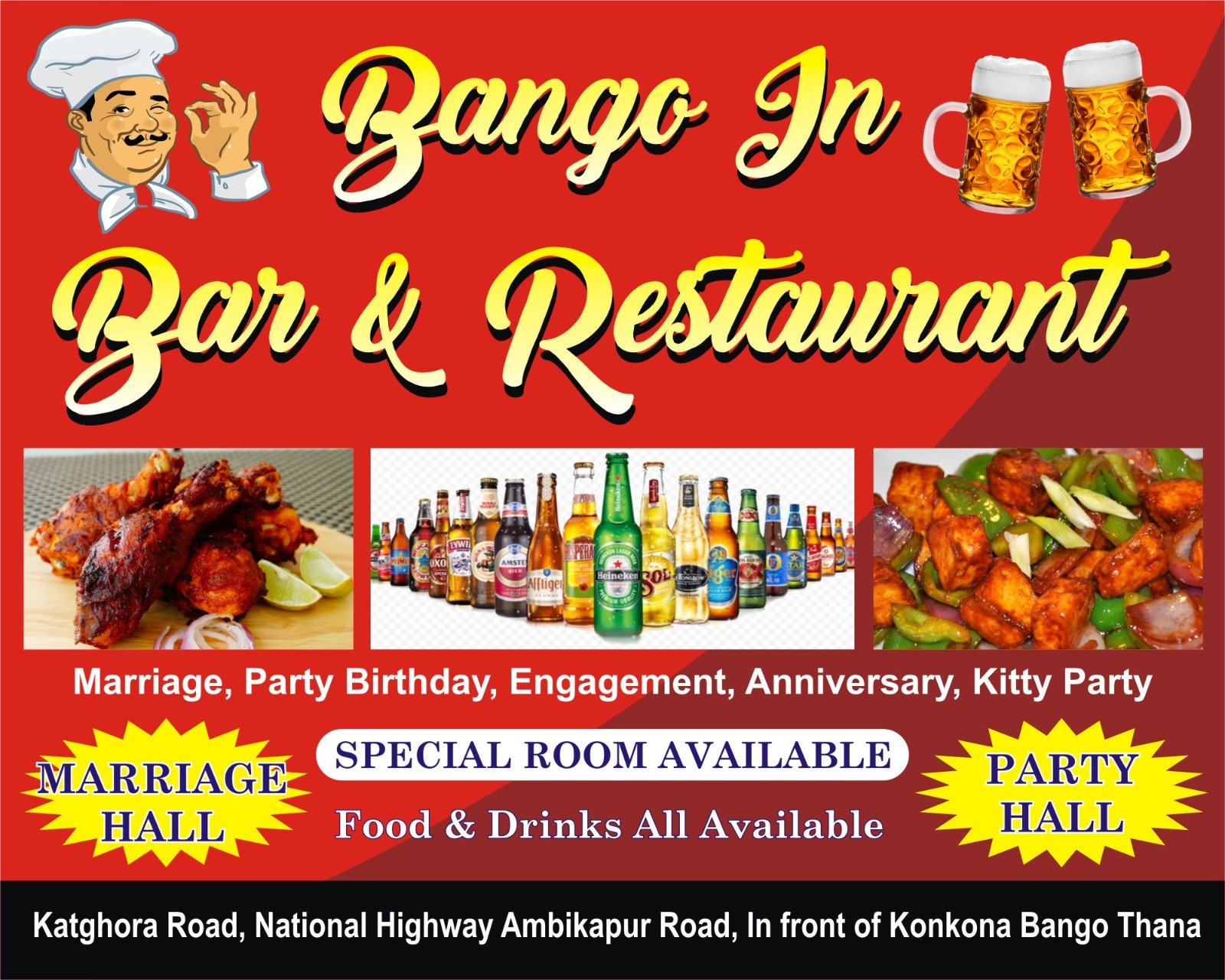 рдиреЗрд╢рдирд▓ рд╣рд╛рдИрд╡реЗ рдХрдЯрдШреЛрд░рд╛ рд░реЛрдб рдкрд░ рдЕрдм рдпрд╛рддреНрд░рд┐рдпреЛрдВ рдФрд░ рд╕реНрдерд╛рдиреАрдп рд▓реЛрдЧреЛрдВ рдХреЗ рд▓рд┐рдП рдЦреБрд╢рдЦрдмрд░реА рд╣реИред рдмрд╛рдВрдЧреЛ рдореЗрдВ рдПрдХ рдирдпрд╛, рдЖрдХрд░реНрд╖рдХ рдФрд░ рдмреЗрд╣рддрд░реАрди рд░реЗрд╕реНрдЯреЛрд░реЗрдВрдЯ тАШBango In Bar & RestaurantтАЩ рд╢реБрд░реВ рд╣реЛ рдЧрдпрд╛ рд╣реИ, рдЬрд╣рд╛рдВ рдХрд╛ рд╕реНрд╡рд╛рдж рдФрд░ рдорд╛рд╣реМрд▓ рджреЛрдиреЛрдВ рд╣реА рд▓рд╛рдЬрд╡рд╛рдм рд╣реИрдВред рд╡рд╣рд╛рдВ рд╕реЗ рдЧреБрдЬрд░рдиреЗ рд╡рд╛рд▓реЗ рдпрд╛рддреНрд░рд┐рдпреЛрдВ рд╕реЗ рд▓реЗрдХрд░ рдкрд░рд┐рд╡рд╛рд░ рд╡ рджреЛрд╕реНрддреЛрдВ рдХреЗ рд╕рд╛рде рдкрд╛рд░реНрдЯреА рдХреА рддрд▓рд╛рд╢ рдХрд░ рд░рд╣реЗ рд▓реЛрдЧреЛрдВ рддрдХтАФрд╣рд░ рдХрд┐рд╕реА рдХреЗ рд▓рд┐рдП рдпрд╣рд╛рдВ рдмреЗрд╣рддрд░реАрди рд╡реНрдпрд╡рд╕реНрдерд╛ рд╣реИред