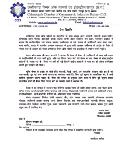 छत्तीसगढ़ चेम्बर ऑफ कॉमर्स एंड इंडस्ट्रीज के प्रदेश अध्यक्ष अमर पारवानी, महामंत्री अजय भसीन, कोषाध्यक्ष उत्तम गोलछा, कार्यकारी अध्यक्ष राजेन्द्र जग्गी ,विक्रम सिंहदेव, राम मंधान, मनमोहन अग्रवाल ने बताया कि छत्तीसगढ़िया सर्व समाज महासंघ छत्तीसगढ़ एवं सर्व समाज के पदाधिकारी आज चेम्बर भवन, बाम्बे मार्केट, रायपुर में माननीय उच्चतम न्यायालय के द्वारा जारी आरक्षण वर्गीकरण के आदेश के विरोध में ”भारत बंद” के आव्हान को लेकर छत्तीसगढ़ चेम्बर ऑफ कॉमर्स एंड इंडस्ट्रीज से समर्थन मांगने पहुंचे।