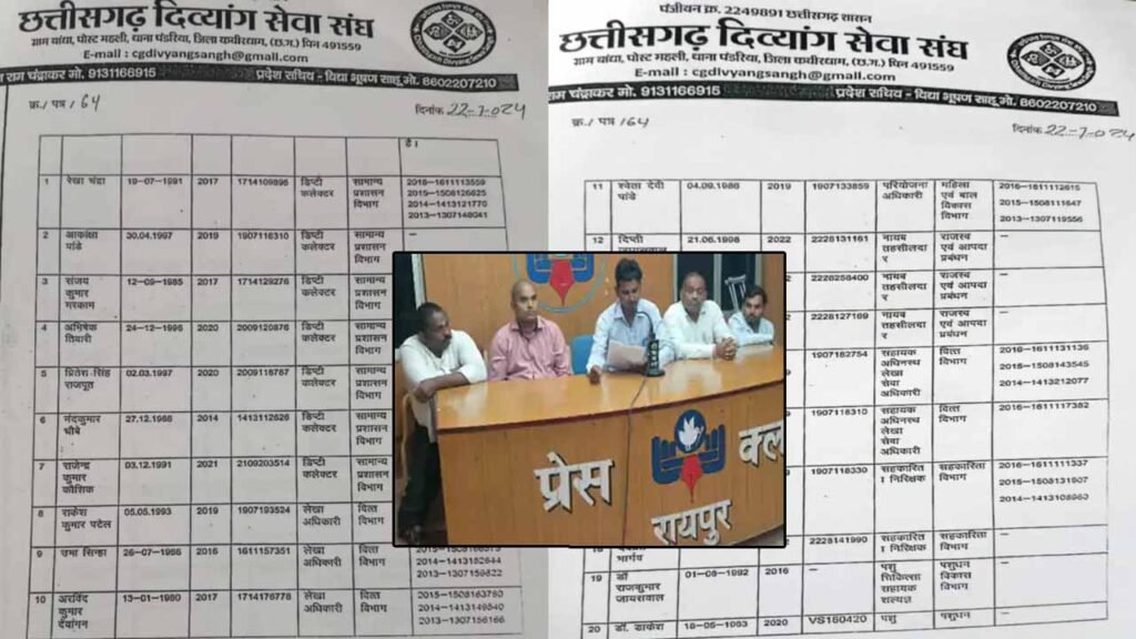 रायपुर 25 जुलाई 2024। IAS पूजा खेड़कर के फर्जीवाड़े का मुद्दा पूरे देश में गरमाया हुआ है। लोकसभा में भी इस मुद्दे की गूंज सुनायी पड़ी, लेकिन खुलासा हो रहा है कि सिर्फ पूजा खेड़कर ही नहीं, दिव्यांगता के नाम कई अन्य राज्यों में अधिकारियों को ने झोल किया है। छत्तीसगढ़ में भी इसे लेकर बड़ा खुलासा छत्तीसगढ़ दिव्यांग सेवा संघ की तरफ से किया गया है। इस मामले में संघ ने प्रेस कांफ्रेंस कर दावा किया है कि छत्तीसगढ़ में 21 अफसरों ने फर्जी दिव्यांगता प्रमाण पत्र के आधार पर नौकरी हासिल की है।
